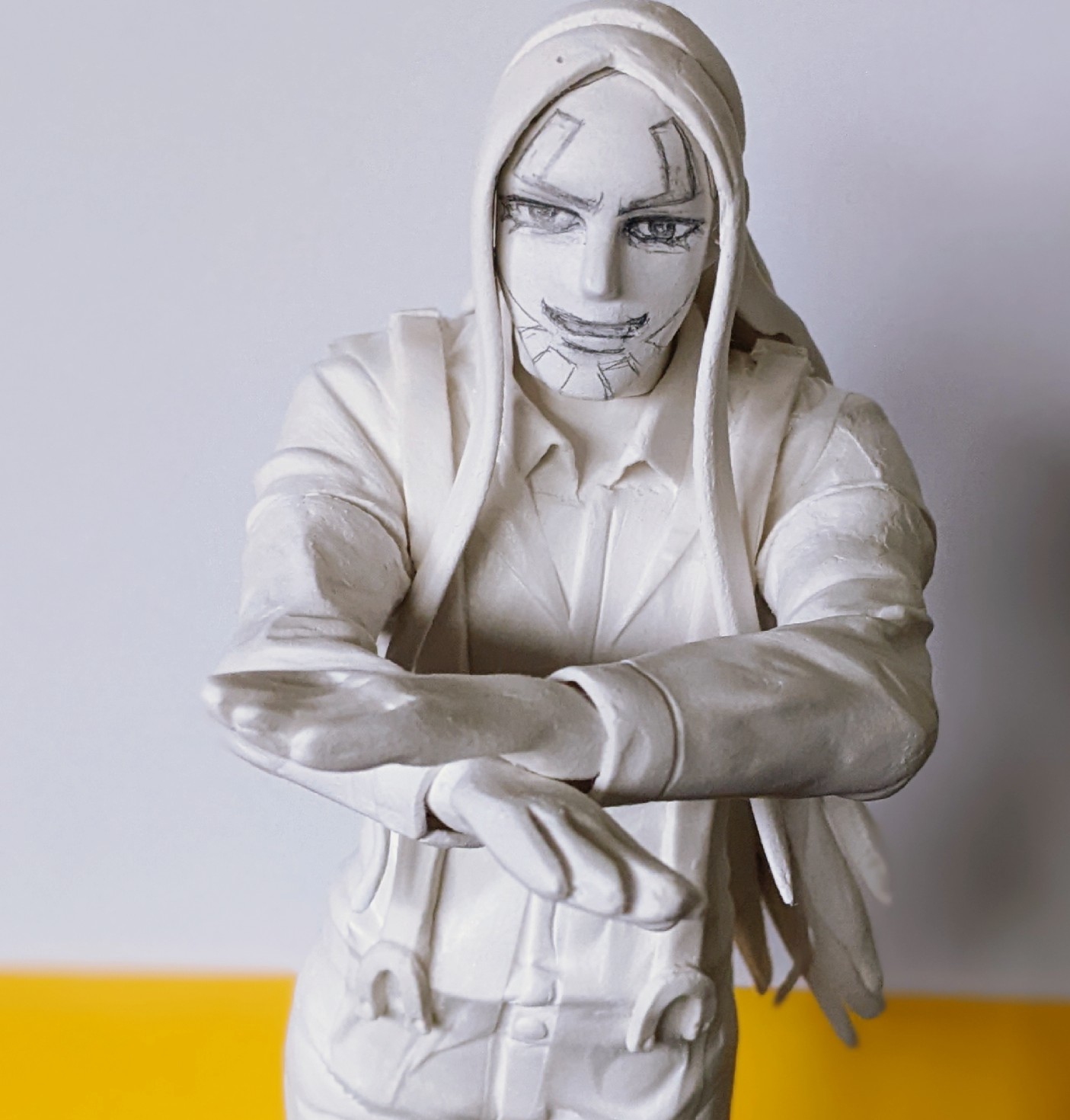 顔を作り、シャープペンで下書きしました。